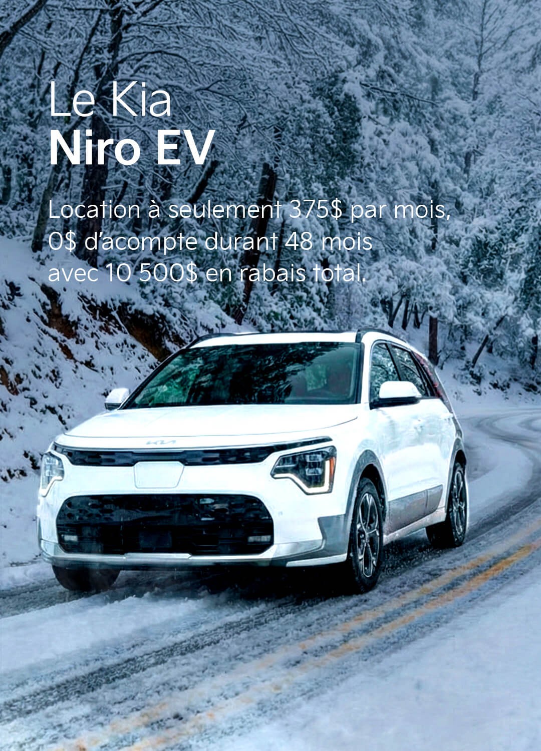 Kia est également une marque tournée vers le futur, qui sera éminemment électrique. C’est pourquoi vous pourrez compter sur une gamme complète de véhicules électriques Kia, mais aussi sur des hybrides performants comme les EV6 2024 ainsi que le Kia Niro, surprenant multisegment sous-compact se déclinant en deux versions (Niro EV et le Niro PHEV). Par ailleurs, si vous recherchez une Kia usagée à vendre au Centre-du-Québec près de Victoriaville, vous trouverez votre bonheur dans notre vaste inventaire de véhicules Kia d’occasion. Équipez votre garage d'une borne de recharge et choisissez dès aujourd'hui un véhicule électrique à vendre dans notre inventaire.
